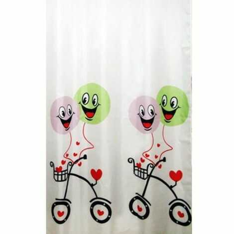Badeforhæng 180 ×200 med sjovt cykel og ballon motiv. Vandafvisende polyester. Leveres med ringe til ophæng. VedligeholdelseMaskinvask ved 40 grader. Lad gerne forhænget tørre i ophængt. Udfoldet position. Tåler ikke tørretumbling. Må ikke kem
