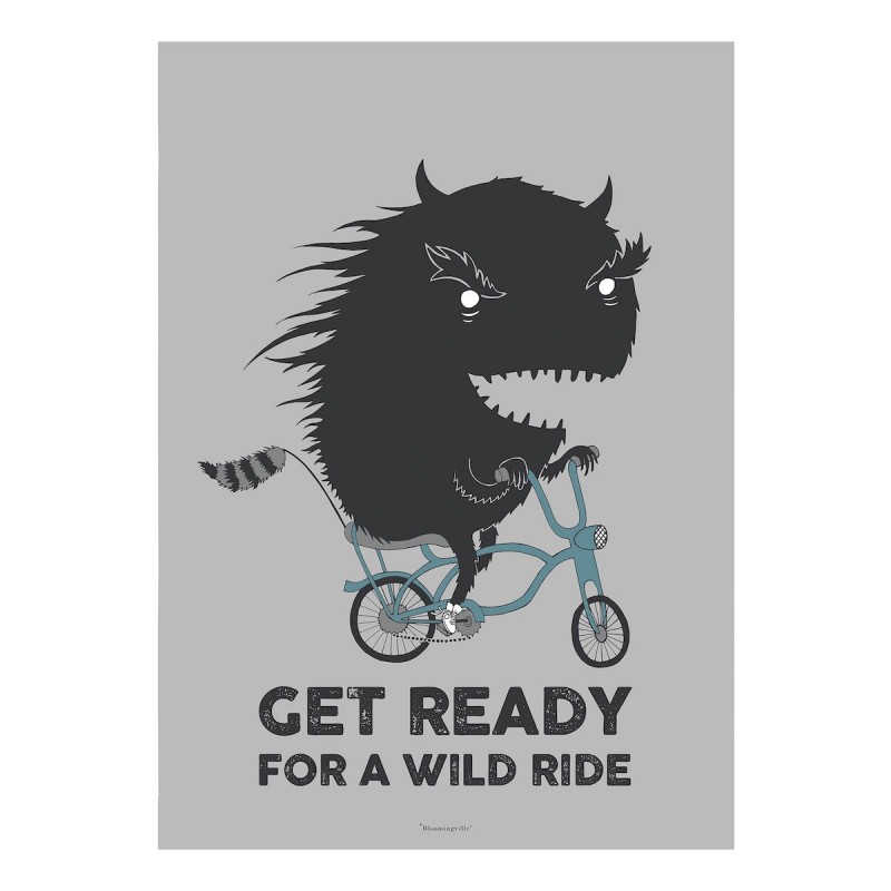 Tilbuddet er gældende, så længe lager havesMål. H. 70. B. 50 cmPlakat fra Bloomingville. Plakaten er trykt på kraftigt papir med etMonster på cykel med teksten. Get ready for a wild ride. En sjov plakat til, at sætte i de fine rammer fra Bloomi